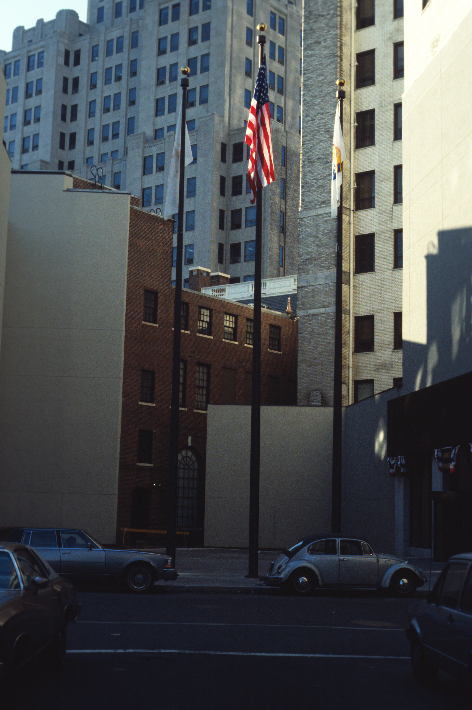 The Providence National Bank building with the Industrial Trust building towering up from behind. The Providence National Bank, completed in 1930, was demolished in 2005 to make room for a luxury condo. Plans for that building were ultimately scrapped but the facade of the Providence National Bank was salvaged and was preserved by the Rhode Island Preservation society.
